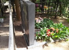 Два покосившихся памятника, сломанная калитка ограды, лавочка требующая покраски |